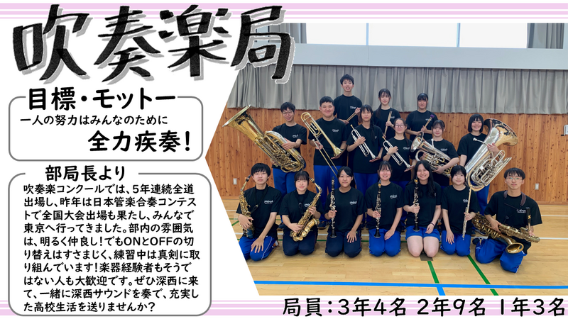 9月には、定期演奏会や高文連の全道大会があります。少しでも心に届く演奏ができるよう、局員一同団結して頑張ります!!