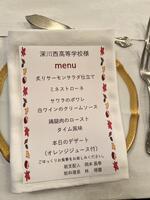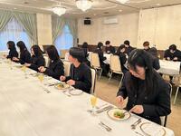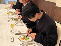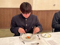 11月7日、3年生の選択授業「フードデザイン」を選択している生徒21名がラ・カンパーニュホテル深川にてフランス料理のテーブルマナーを学びました。当日は7品の料理とともにナイフやフォークの使い方、食事中の振る舞いなどを教えていただきました。フランス料理のコースを初めて食べた生徒も多く、緊張しながらも美味しく楽しく学ぶことができました。ホテルの皆様ありがとうございました。