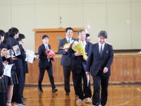 深川西高校を支えてくれた先生方は、感謝を込めた花束の贈呈と生徒たちの花道で見送られました。